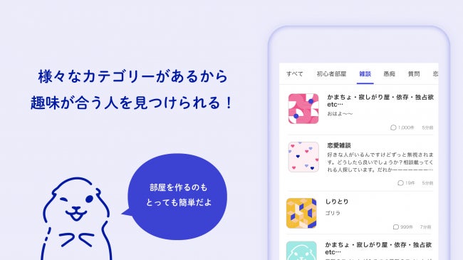 使い方は多種多様。悩み相談から趣味の話、雑談、グルメ、アニメ漫画など、19のカテゴリーに分かれているので自分に合う話題で自分なりの使い方を見つけよう!