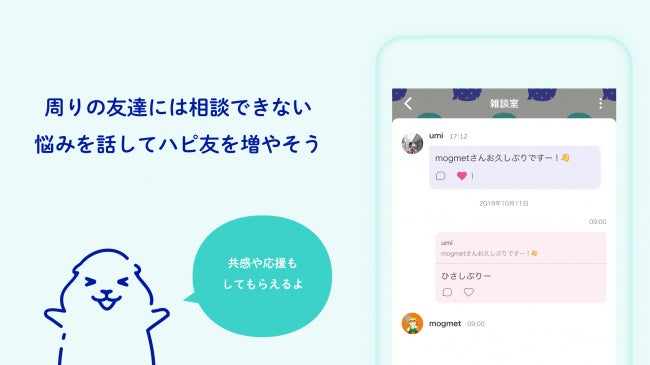 悩みごとや困りごとも、アプリ内のハピ友に相談して幸せになりましょう!!