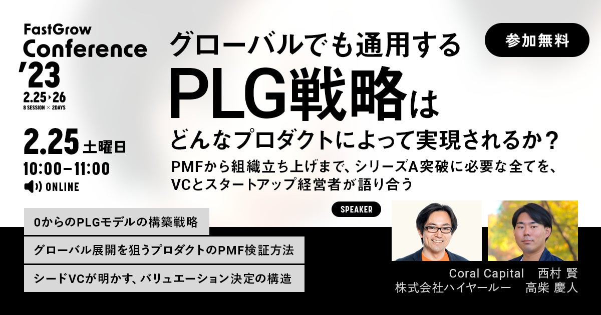 弊社COO高柴が登壇するテーマは「グローバルでも通用するPLG戦略は、どんなプロダクトによって実現されるか?」。Coral CapitalのPartner & Chief Editorである西村 賢氏と共にPMFから組織立ち上げまで、シリーズA突破に必要な全てを語り合います。