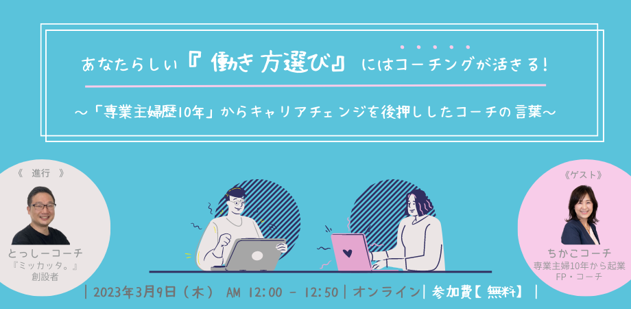 【タイトル】 あなたらしい『働き方選び』にはコーチングが活きる!
