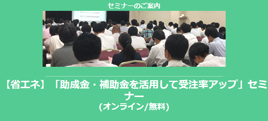 【省エネ】「助成金・補助金を活用して受注率アップ」セミナー(無料/オンライン)