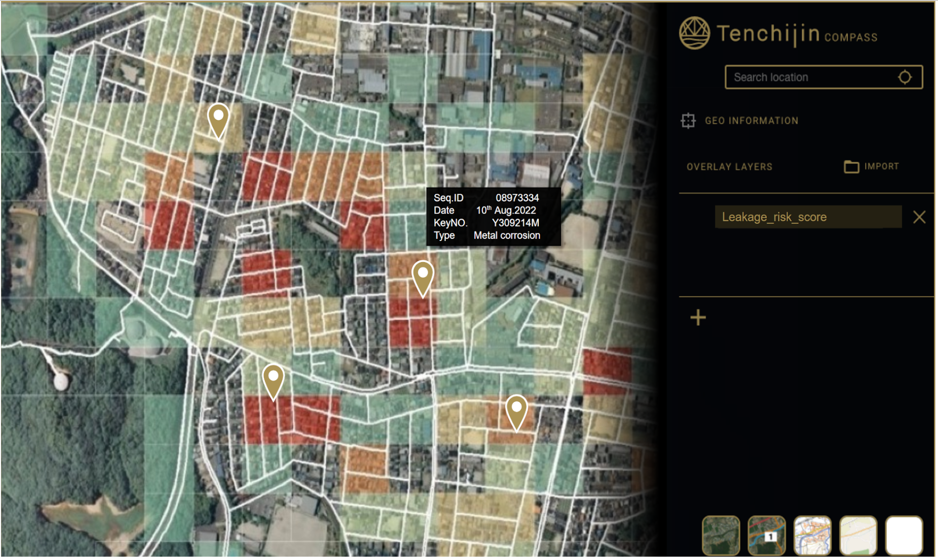 本イベントは自治体の水道事業やDX戦略に携わる方々を対象に、漏水リスク管理業務システム「天地人コンパス」をご紹介します。漏水リスクの高い水道管路を評価する手法例や漏水調査結果を効果的に管理する方法をご紹介いたします。