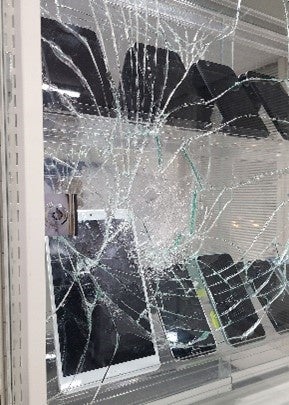 近年の“強盗”は、強盗犯罪の組織化や、それに伴う手口の巧妙化が進んでおり、対策が難しくなっているのが現状です。こちらのフィルム施工を施すことによって、従来強盗対策として実施していた閉店後の什器への網掛けや高額商品を金庫へ移動するなど、運用上非常に手間が掛かっていた作業を削減することへもつながると考えております。