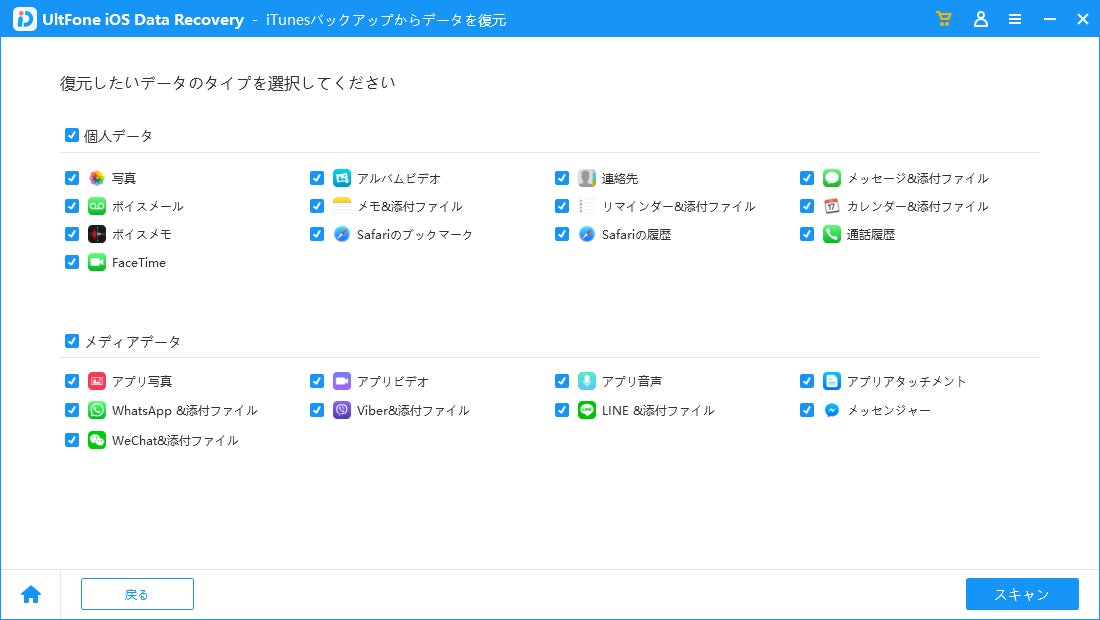 方法2:UltFone iOS Data Recoveryを使用してiTunesバックアップからデータを復元する