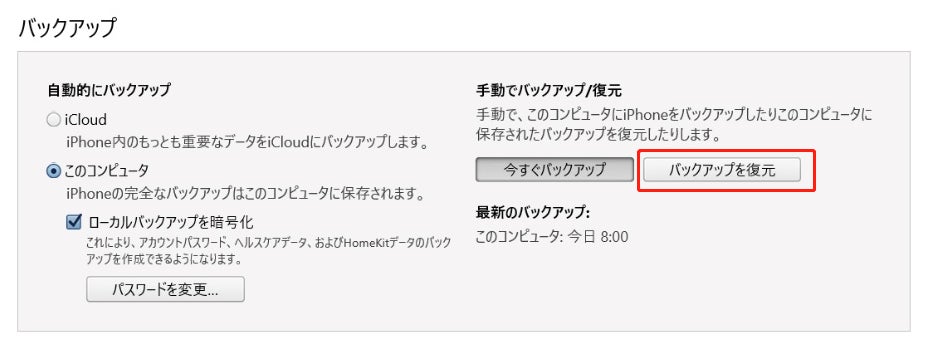 方法1:iTunes経由でiTunesバックアップから通話履歴を復元する