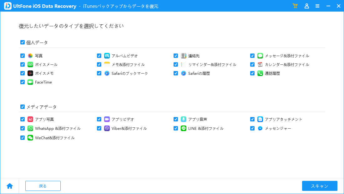方法2:UltFone iOS Data Recoveryを使用してiTunesバックアップからデータを復元する