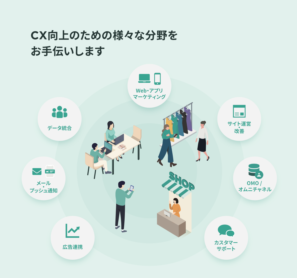 Web・アプリマーケティング、データ統合、メール・メッセージ送信、サイト運営・改善、広告連携、カスタマーサポートなどの分野におけるご相談をお待ちしております。