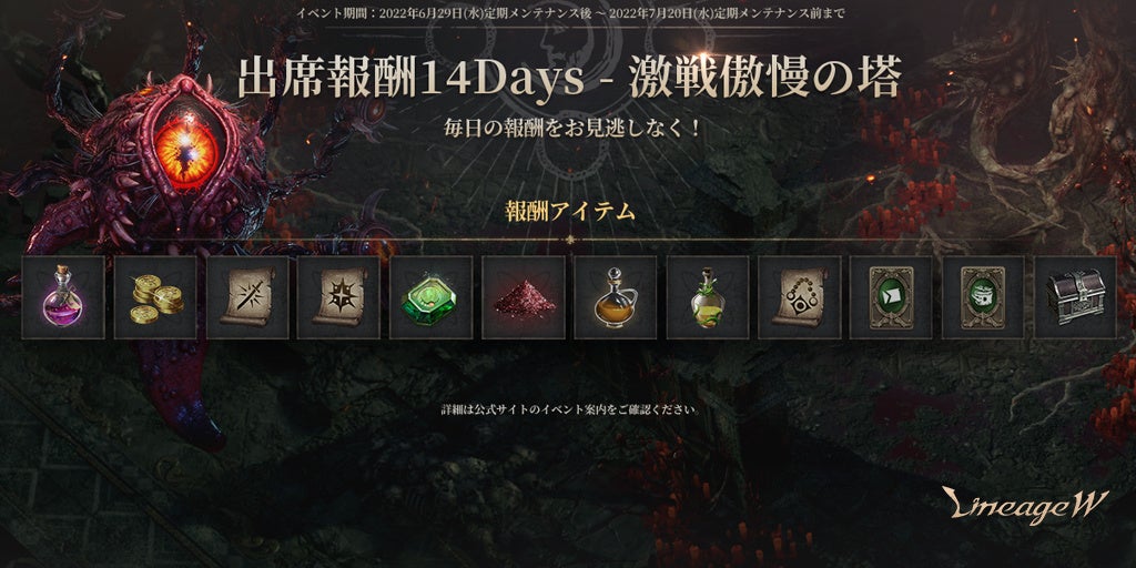 ≪「出席報酬14Days – 激戦傲慢の塔」の詳細はこちら≫