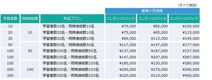 学習者数※3、同時接続数※4、利用するコンテンツパックの点数により、料金が異なります。