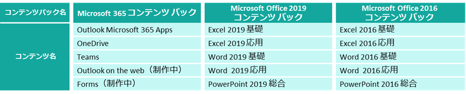 第一弾として提供する、Microsoft 365/Microsoft Officeに関するコンテンツは、マイクロメイツが200社以上のお客様に提供してきた、Microsoft 365/Microsoft Officeの研修・教育コンテンツの内容をもとに開発しました。業務に必要なポイントをおさえながら、基礎から応用までを体系的に学習することが可能です。
