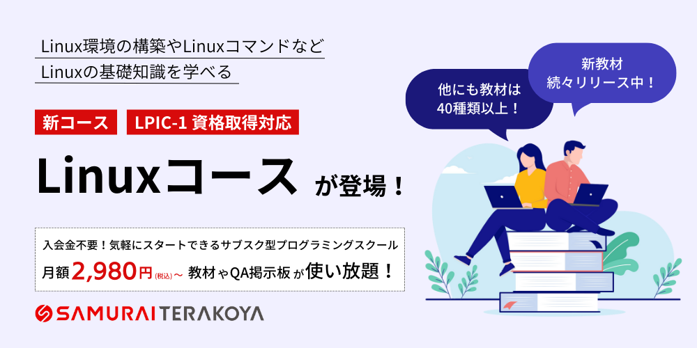 ◎Linuxコース 詳細:https://terakoya.sejuku.net/course_programs/01GS4PT0K1G4AV3K9BKEQP9422