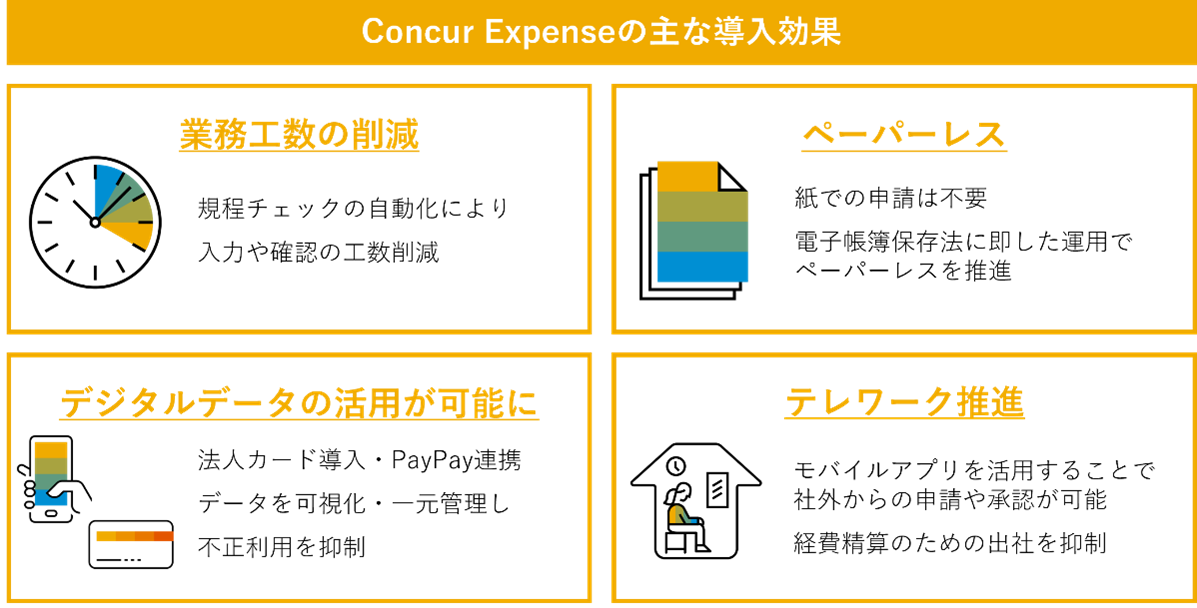 「Concur Expense」の導入をきっかけに、従来の紙中心の申請・承認作業はオンライン上で完結。証票の保管の負担が削減し、書類の紛失リスク、記載ミスも一掃されました。