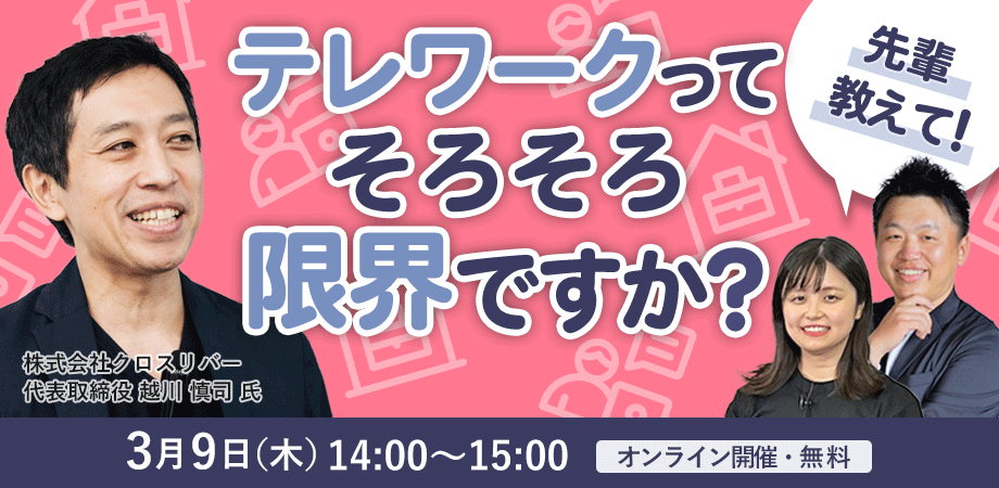 (本社:東京都渋谷区、代表取締役社長:齊藤和馬、以下「Innovation & Co.」)は、日本マイクロソフト株式会社の協賛で、『トップ5%社員の習慣』の著者・株式会社クロスリバー 越川慎司氏に聞く、「テレワークってそろそろ限界ですか?」をテーマとしたセミナーを2023年3月9日(木)に開催いたします。