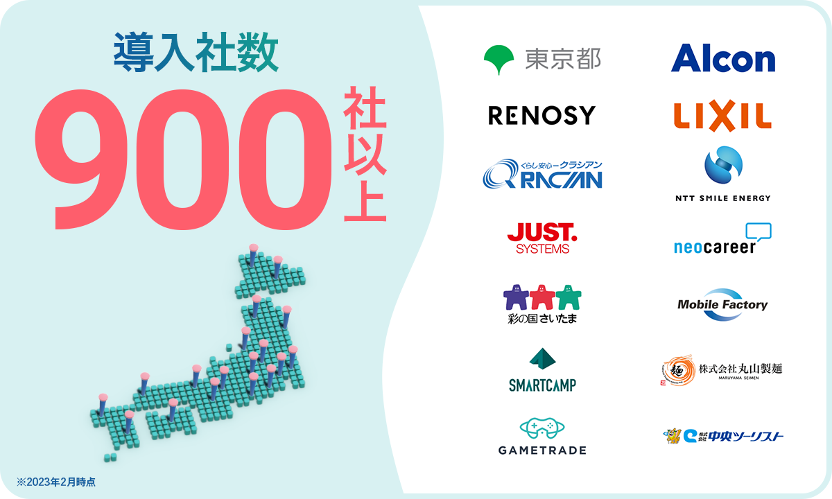 「デジコ」は、2023年2月時点で導入社数900社を突破しました。約3年間でさまざまな業種・業態への導入実績を有しており、多種多様な用途でご利用いただいております。