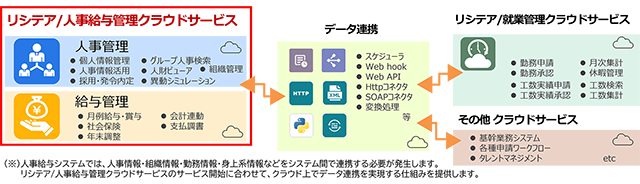 図: リシテア/人事給与管理クラウドサービスと他サービスとの連携像