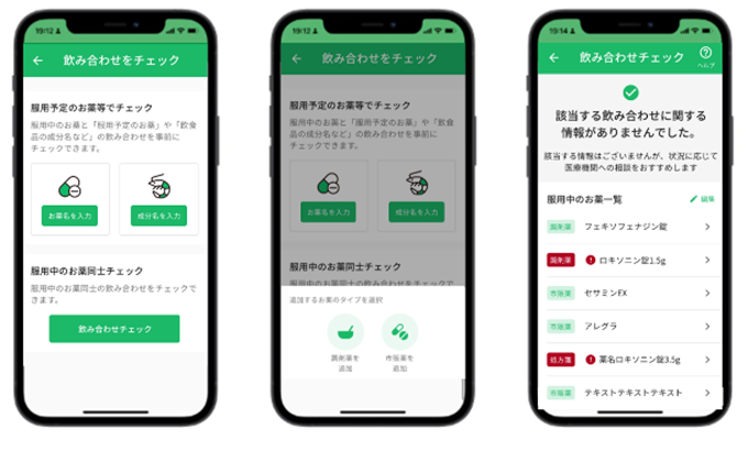 ・服用中の医療用薬品・一般薬(OTC)の飲み合わせが確認できる