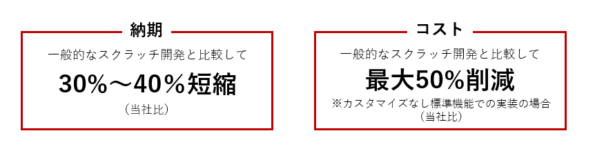 短納期、低コストを実現するために、標準アセットの適用に加えてこれまで永きにわたりシステム開発に携わってきた実績とノウハウを組み合わせ最適なシステム構築をご提案いたします。