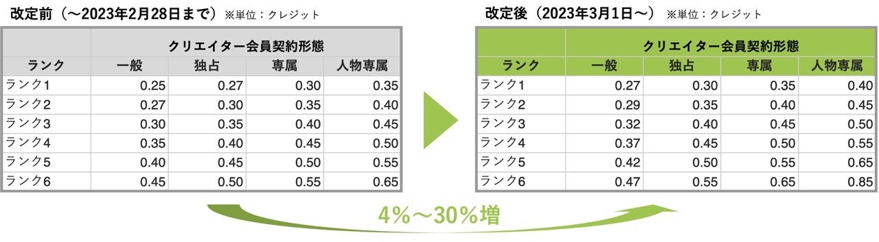 また、2023年10月から始まるインボイス制度に対応し、クリエイター会員の適格請求書発行事業者登録の有無によって消費税の申告における仕入税額控除額が変わることを踏まえると、クリエイターの負担軽減のためにも、報酬割合を引き上げることがクリエイターの活動を守ることにつながると考えました。