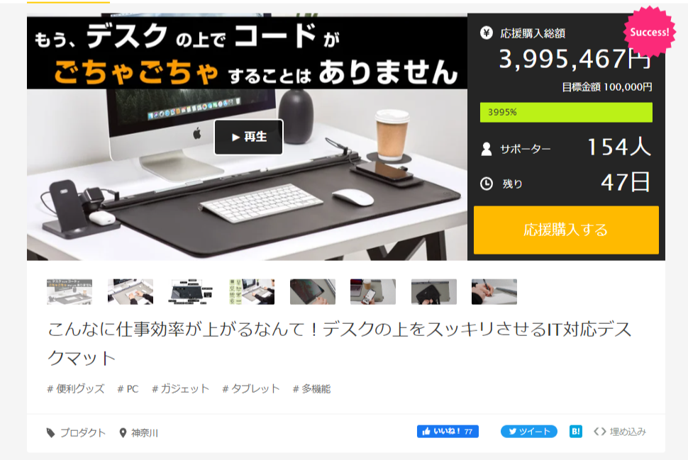 おかげさまでMakuakeでの応援購入金額が400万円目前、150名以上のお客様にご購入下さいました!