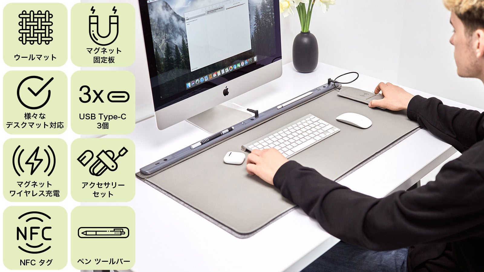 木製の磁気マット固定板には、USB TYPE-Cが3つ(うち1つは給電用)埋め込まれています。今やUSBはTYPE-Cが主流となってきました。
