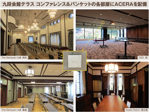 遮音性を重視する貸し会議施設では、部屋を仕切る壁や建具が重厚に作られているという特徴を踏まえてアクセスポイントを配置し、多台数端末の同時安定接続に対応する無線LANを構築しています。バンケットホールなどの大きな部屋には複数台のACERAを設置し、接続容量に余裕を持たせた無線LANを構築しています。