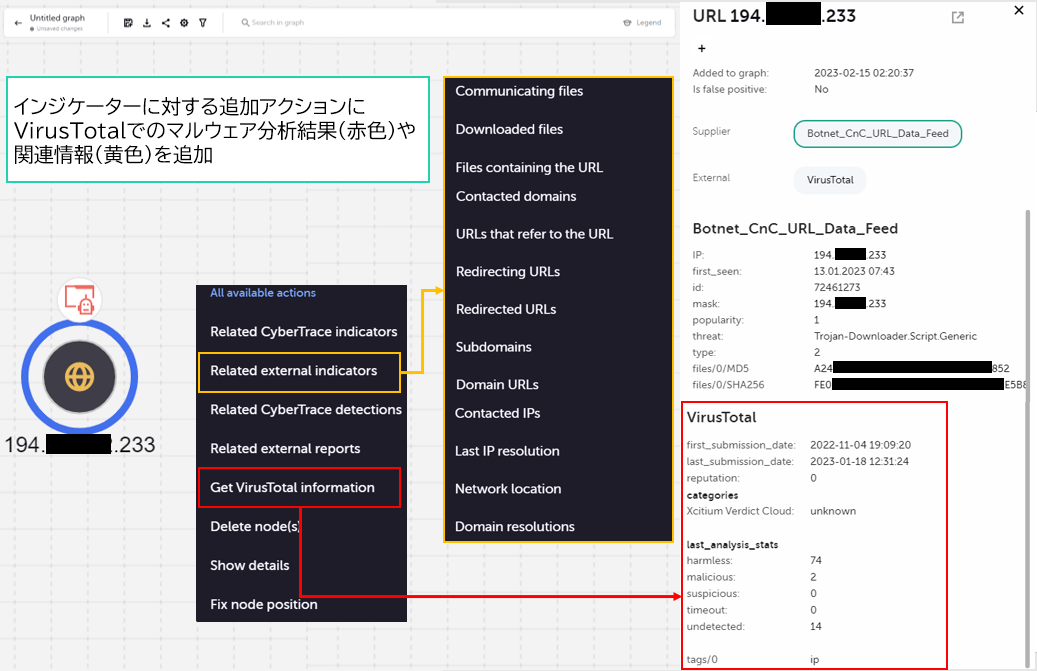 図4:CyberTrace上のリサーチグラフでVirusTotalの情報を取得