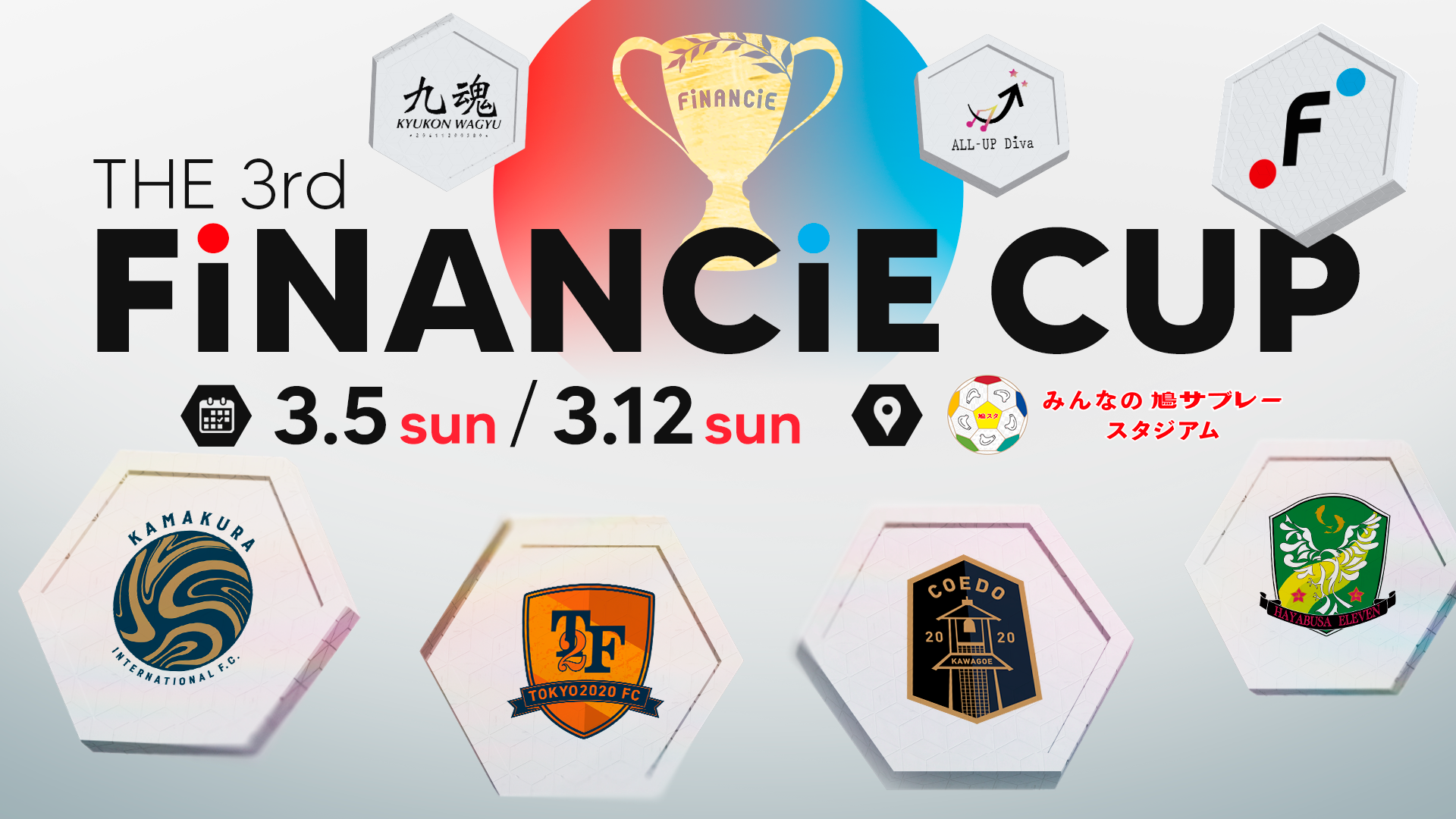 「FiNANCiE杯」とは、「FiNANCiE」上でトークンを発行するクラブチームによって競われるトーナメント形式の大会です。第3回大会は、はやぶさイレブン、鎌倉インターナショナルFC、COEDO KAWAGOE F.C、TOKYO2020 FCの4チームがトーナメント形式で対決いたします。