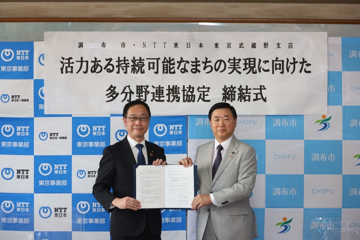 調布市(市長:長友 貴樹)と東日本電信電話株式会社 東京武蔵野支店(支店長:川上 卓郎、以下「NTT東日本」)は、地域の活性化と市民サービスの向上を図るとともに、多様な価値や豊かさを持続的に創出していくまちの実現を目指すため、多分野連携に関する協定を締結いたしました。