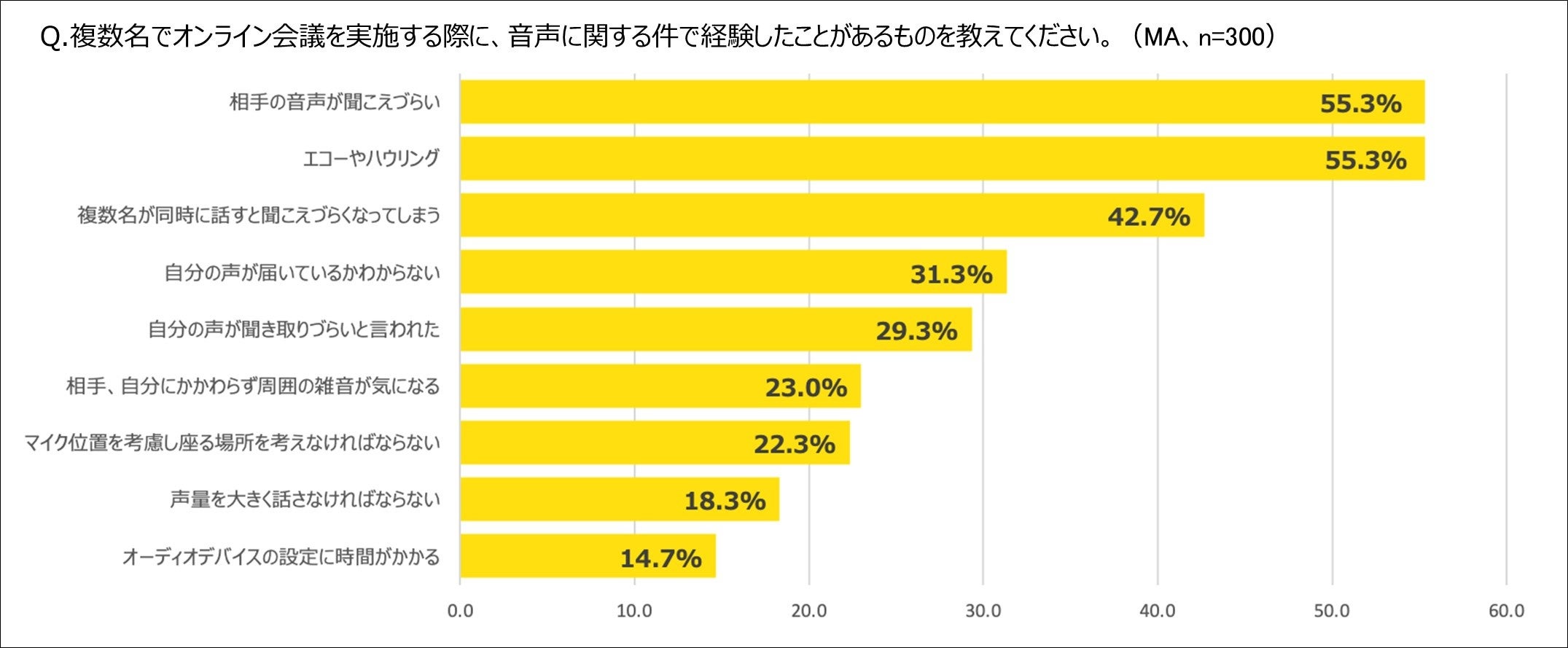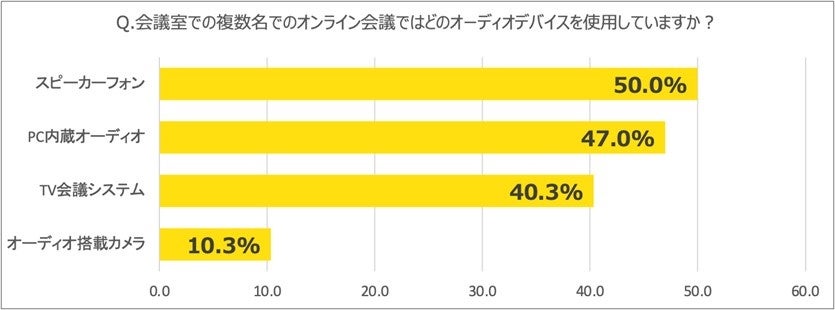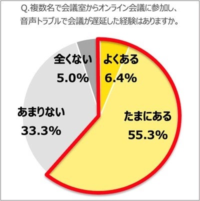 会議室でハイブリット会議に参加する際、61.7%が音声トラブルで会議が遅延した経験あり