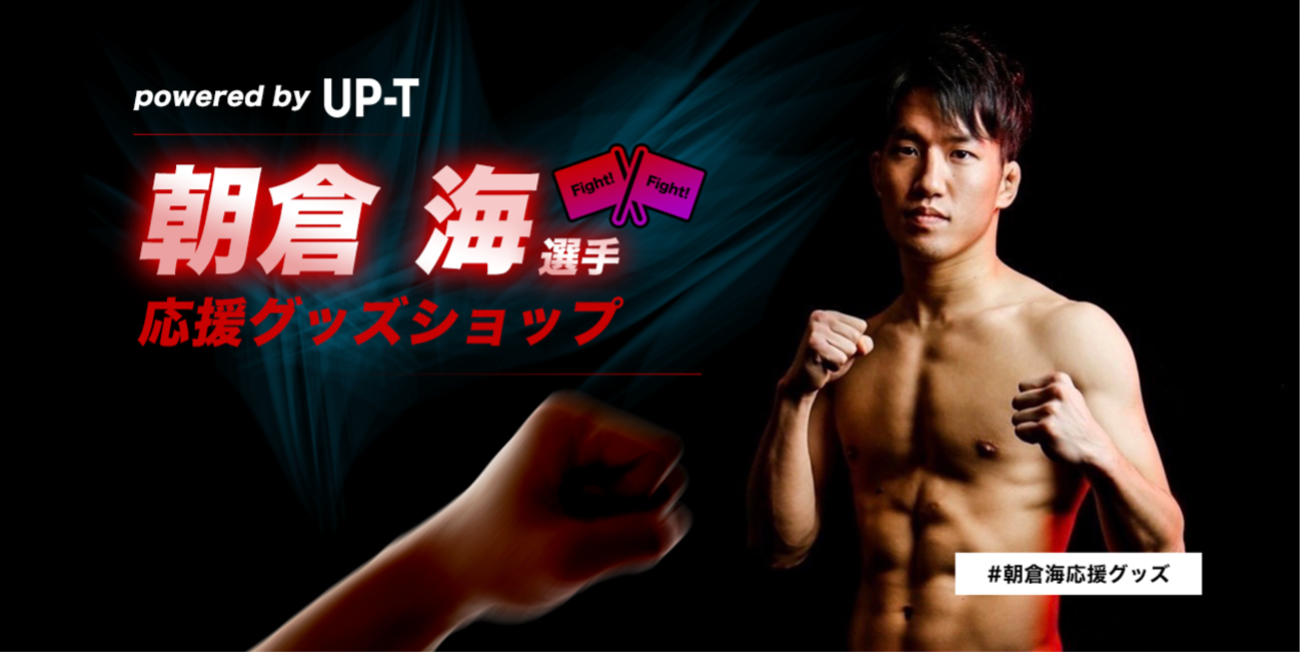 限定オリジナルTシャツが登場!オリジナルTシャツのUP-Tが、朝倉海選手とのコラボレーション企画を開催し、オリジナルデザインのTシャツを販売いたします。期間限定販売となっておりますので、お早めにご注文ください。是非、この機会に特別なTシャツを手に取り、朝倉海選手の応援をしましょう!