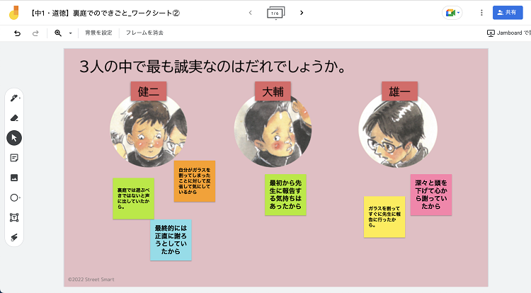 ③中学1年生・道徳「裏庭でのできごと」ワークシート(Google Jamboard™)
