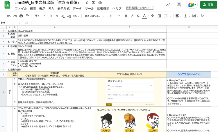 そこで今回は、日本文教出版株式会社様が出版する小学6年生の道徳教科書「小学道徳 生きる力」と、中学1年生の道徳教科書「中学道徳 あすを生きる」の内容に合わせて Google for Education™ を効果的に取り入れた学習指導案(略案)と教材テンプレートを開発しました。