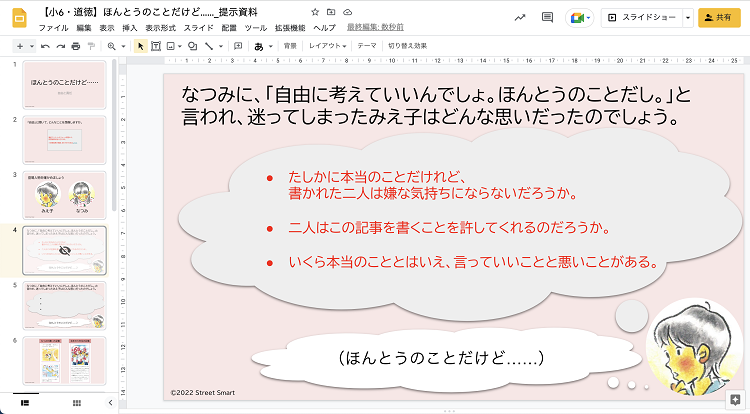 ②小学6年生・道徳「ほんとうのことだけど……」提示資料(Google スライド™)