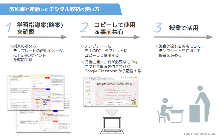 ICT教育を進める先生方をサポートするストリートスマートは、ICTを活用した授業準備の負担を軽減するためには、教科書と連動したコンテンツが必要だと考えました。