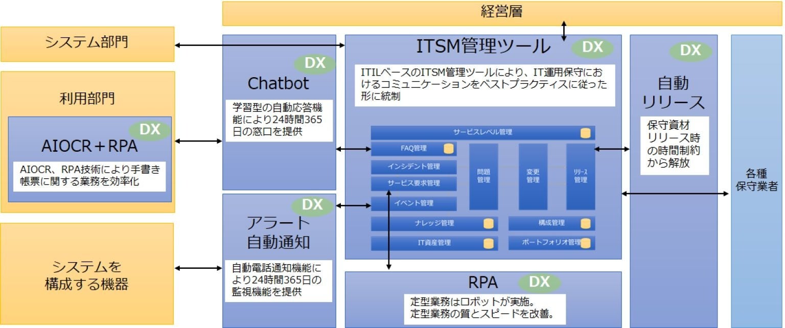 弊社はIT運用保守の質を高めるために様々なDX技術を導入しております。