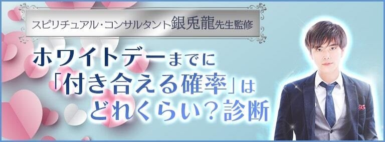 - スピリチュアル・コンサルタント 銀兎龍先生監修 ホワイトデーまでに「付き合える確率」はどれくらい?診断