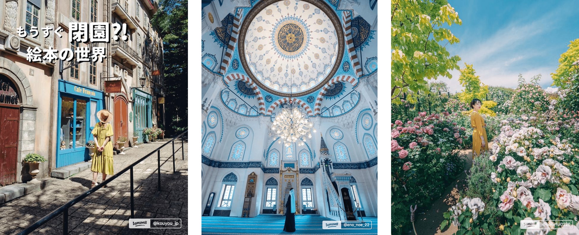 (写真:上段左から、星の王子さまミュージアム/東京ジャーミイ/横浜イングリッシュガーデン/toggle hotel suidobashi/五千頭の龍が昇る聖天宮、埼玉)/小浦海岸、千葉)