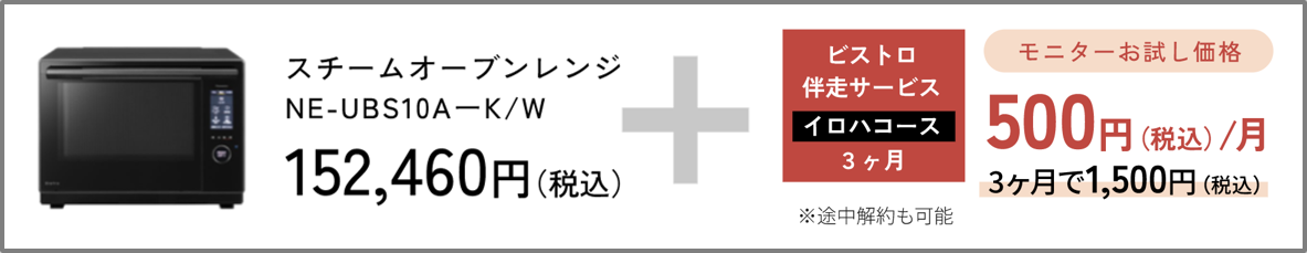 ・スチームオーブンレンジビストロ NE-UBS10A-K/W(税込金額152,460円)