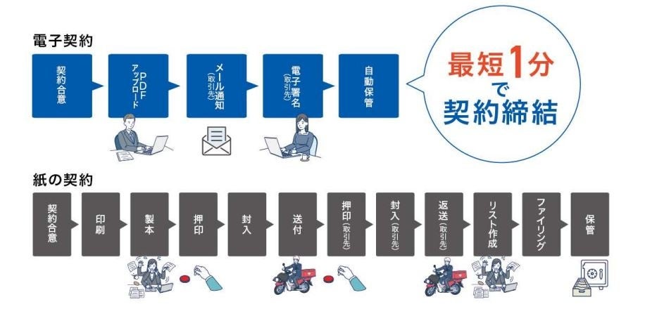 従業員は場所を選ばず契約締結業務を行うことができ、テレワークの普及につなげられます。