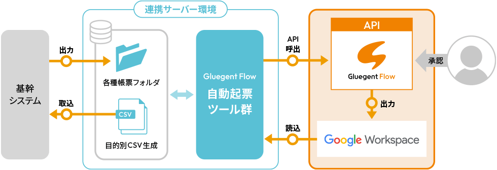 これに先駆けて、2018年よりグループウェアのGoogle Workspaceの導入と合わせて、SAML対応したシングルサインオンを実装できる「Gluegent Gate」と、Google Workspaceだけでは不足していたワークフロー機能を補う「Gluegent Flow」を採用しており、このたび、営業担当者の取引価格等の申請・承認業務効率化のために、「Gluegent Flow」APIを採用し、自動起票ツールを開発して、基幹系システムとのデータ連携を実現しました。自動起票ツールは、サイオステクノロジーのパートナー企業である株式会社フライトシステムコンサルティング(本社:東京都渋谷区、代表取締役社長:片山圭一朗)が象印マホービン向けに新規に開発しました。