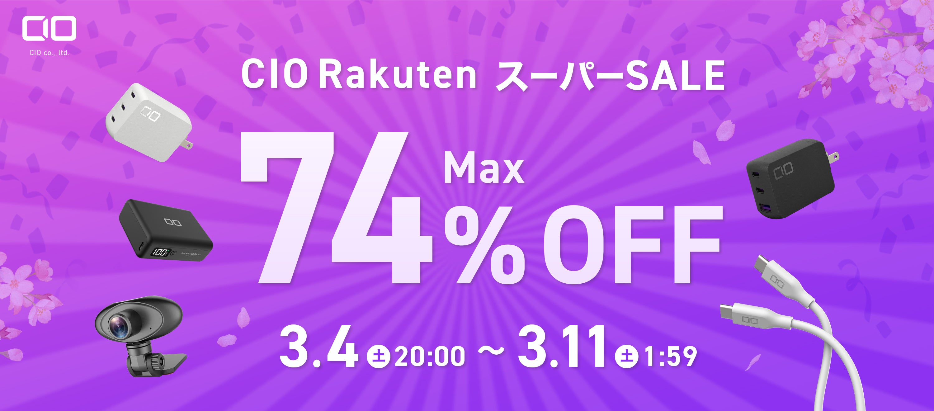 | GaN充電器 | CIO-G65W2C | 黒・白 | 4,800円 | 12% |