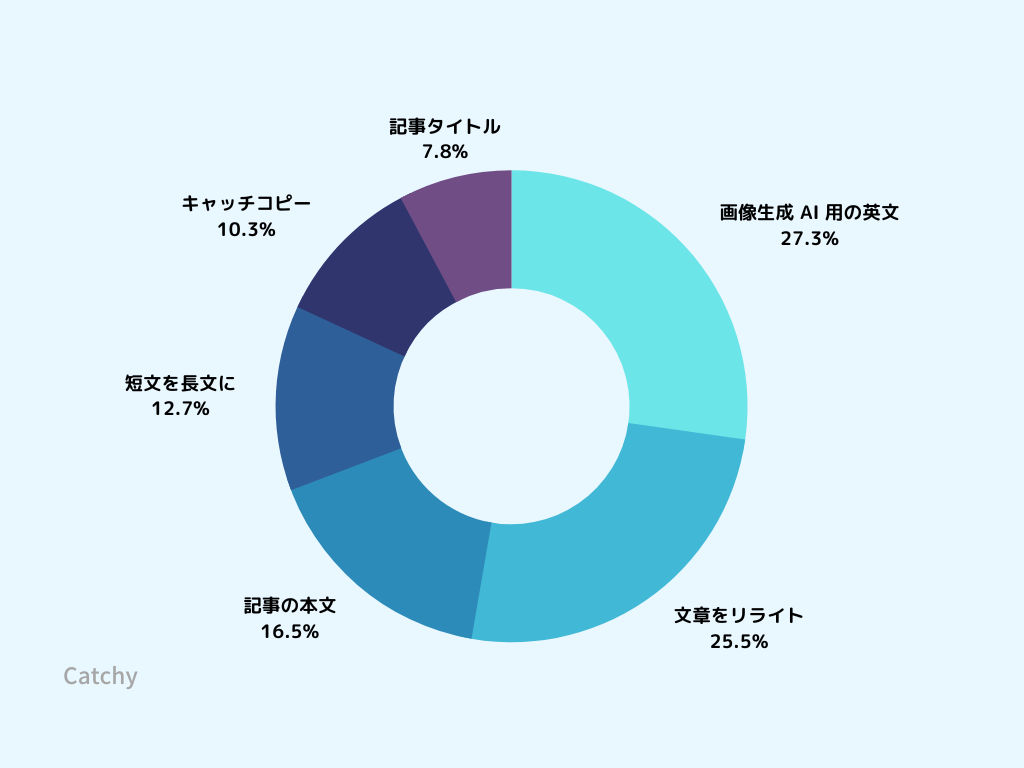 Catchyは、日々の文章作成をより簡単にするための AI ライティングアシスタントツールです。キャッチコピーや記事の生成から、動画や新規事業などの企画提案など、150を超える様々なシチュエーションでご利用いただけます。