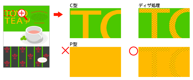 また、パターン処理を施すことでCUD対応を実現するDither(ディザ)オプションをご用意しました。デザイン変更を最小限に抑えたい、極力色相を変更したくないという場合は、ディザリング処理をお試しください。