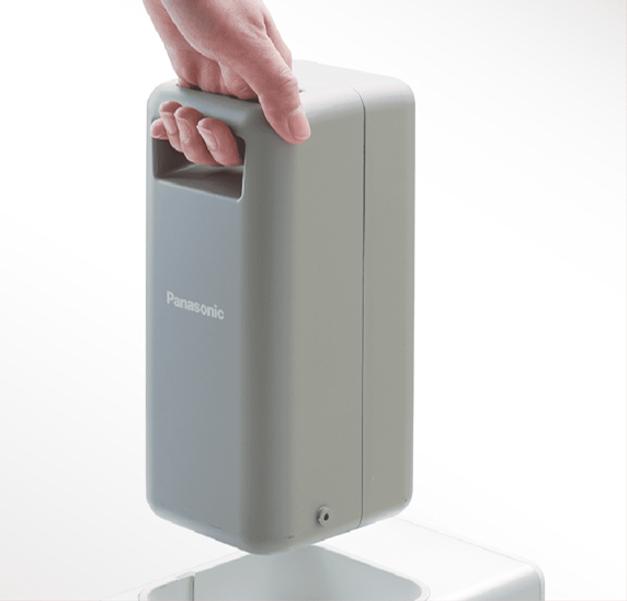ボトルで水を運ぶように電気を持ち運んで使える可搬型バッテリー、構想中のモビリティ活用を展示