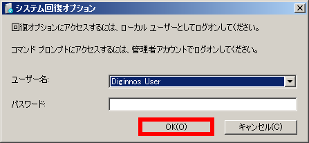 Step2:ユーザー名に管理者アカウントを選び、パスワードを入力して「OK」をクリックします。