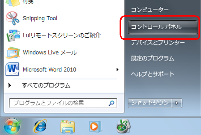 Step1:「スタート」ボタンをクリックして「コントロールパネル」を選択します。