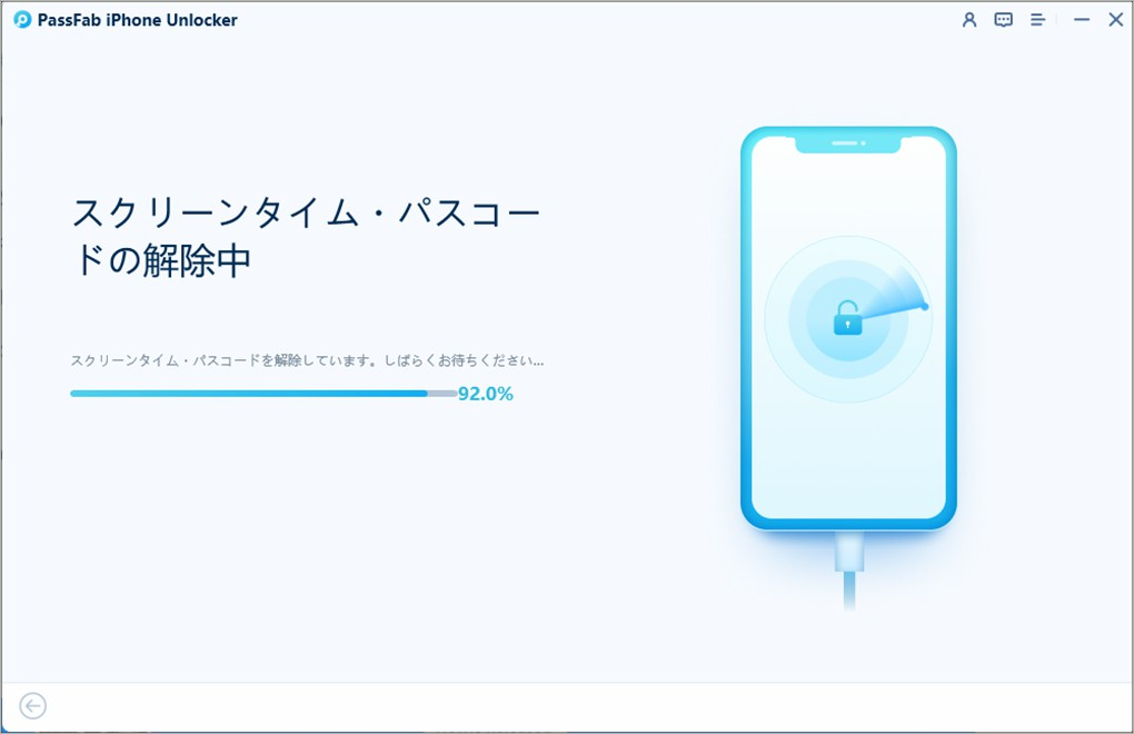 Step6:スクリーンタイム・パスコードの解除中はデバイスとパソコンの接続を切ることなく、作業の完了をお待ちください。