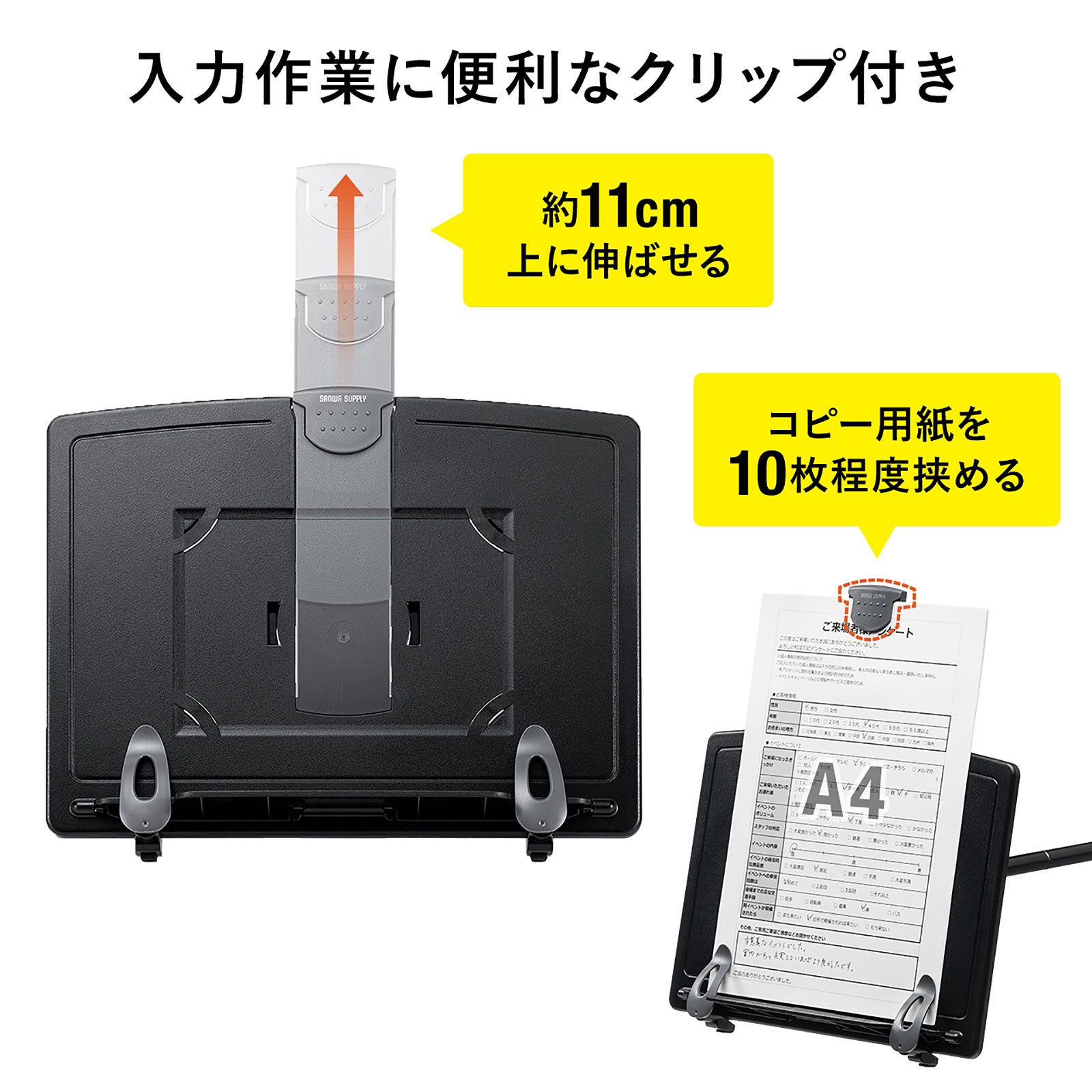 入力作業に便利なクリップ付きで、上に伸ばすことできるので、データホルダーとして使用できます。