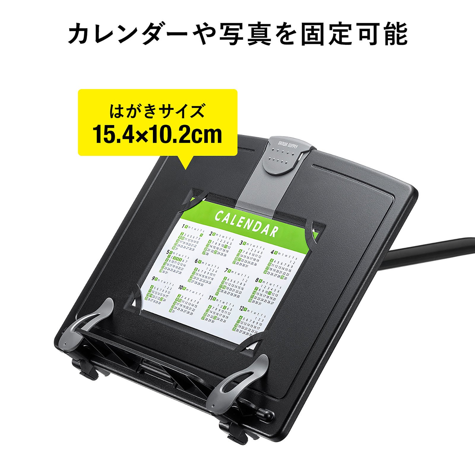 ブックスタンドの中央部分にはがきサイズのカレンダーや写真を挟むことができます。