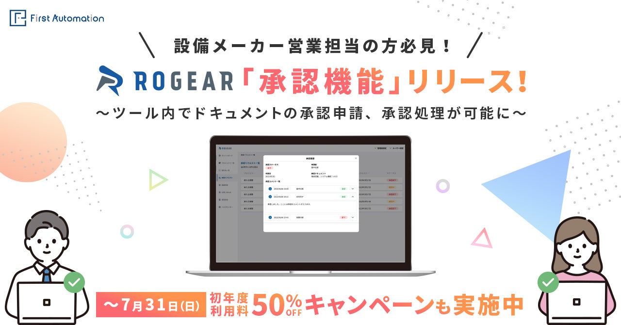 さらに、ROGEARの初期費用無料&初年度利用料50%オフになるお得な「ROGEAR初年度利用料50%オフキャンペーン」も、2022年7月31日(日)までの期間限定で開催中です。新機能を追加し、更に使いやすくなったROGEARをぜひご体感ください。